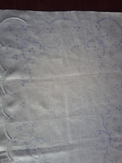 He hecho algunas cositas pintadas en tela. El primero es un camino de mesa para pintar que me trajo mi hermana de La Palma. Pinté las flores blancas, porque el fondo era oscurito y porque me gustan las flores blancas.